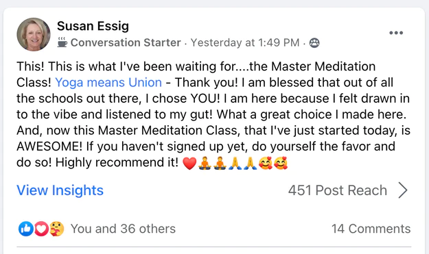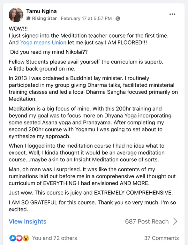 Yogamu is currently offering the Meditation Teacher Training on a pay-what-you-wish basis, which means you can pay any price you’d like between the minimum and $300